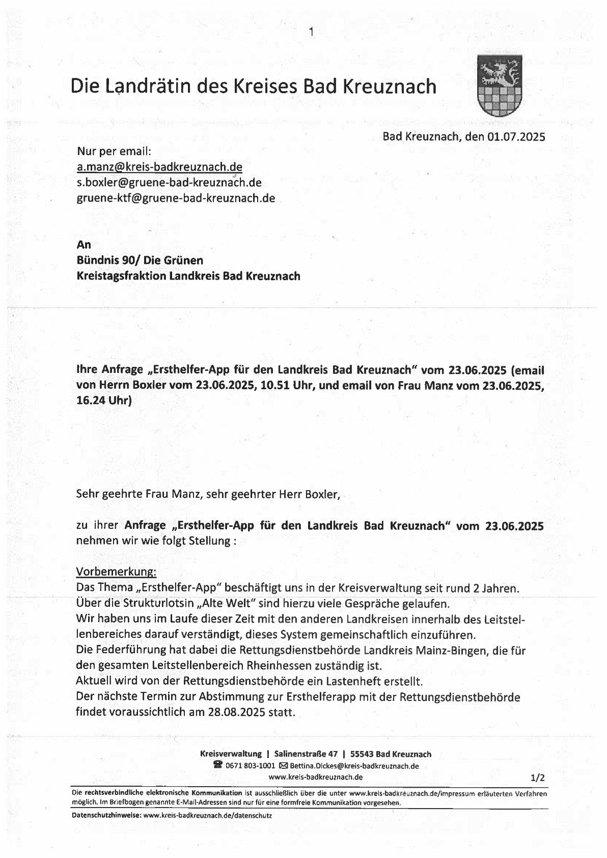 Sehr geehrter Frau Landrätin Dickes,