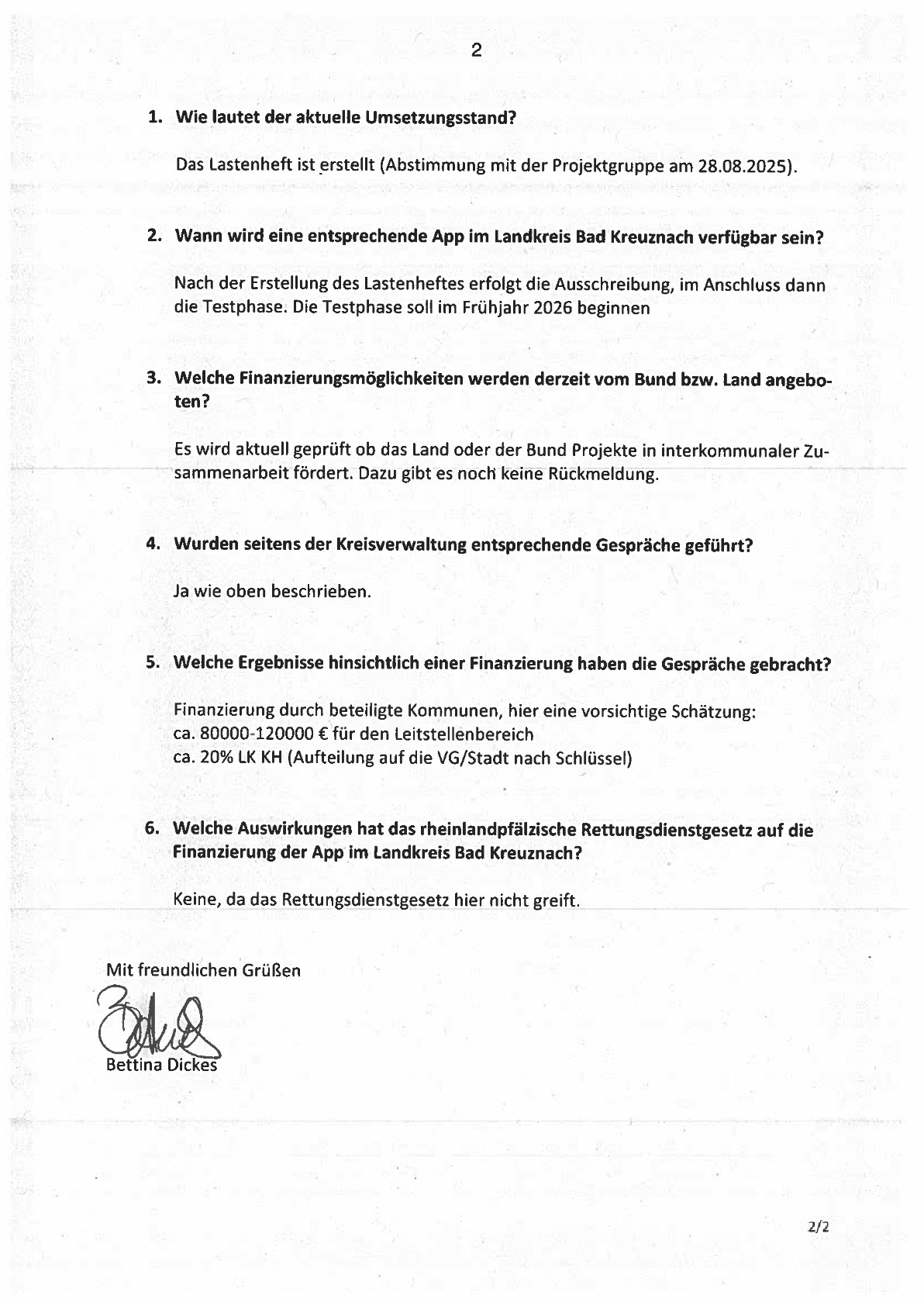 4. Wurden seitens der Kreisverwaltung entsprechende Gespräche geführt?