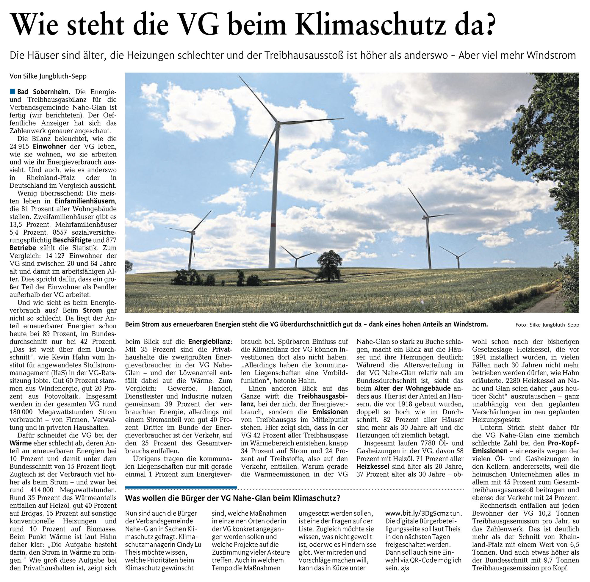 Am 17.07. fand im Rathaus Bad Sobernheim eine gut besuchte Veranstaltung statt, bei der Cindy-Lu Theis, die Klimaschutzmanagerin der Verbandsgemeinde Nahe-Glan, das erste Teilstück ihres Klimaschutzkonzepts präsentierte. Zahlreiche Bürgerinnen und Bürger waren gekommen, um sich über die Fortschritte in Sachen Klimaschutz zu informieren. Der Verbandsbürgermeister Uwe Engelmann begrüßte die Gäste, darunter Kevin Hahn und Prof. Dr. Peter Heck vom Institut für angewandtes Stoffstrommanagement (IfaS) am Umwelt-Campus Birkenfeld (UCB), und lobte die Grünen für die Initiative zur Schaffung der Klimaschutzmanager-Stelle (Anm. d. Red. Dabei nannte er Barbara Bickelmann, geistige Mütter und Väter gab es einige, aber ganz besonders danken müssen wir unserem ehemaligen Co-Sprecher Gerald Knöbel aus Odernheim am Glan. Ohne sein handeln und wirken, wäre die Stelle nicht geschaffen worden).